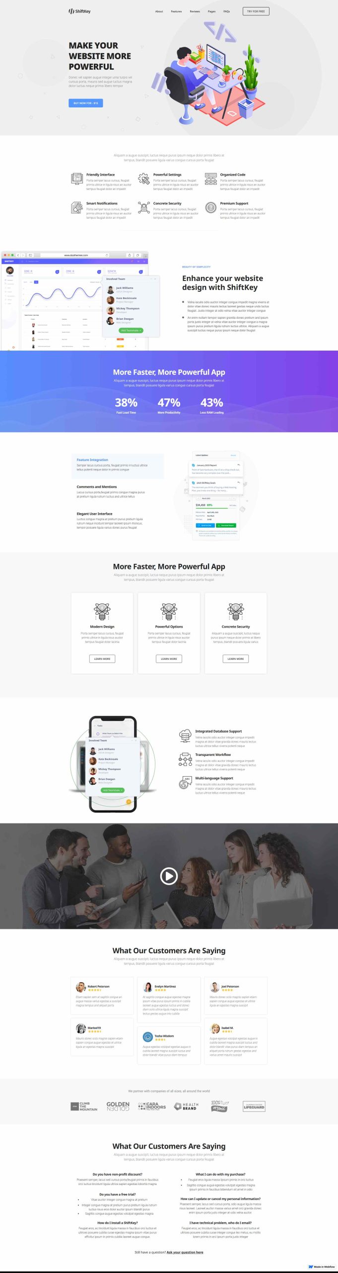 This Webflow site promotes ShiftKey, a sleek tool designed to make websites more powerful and user-friendly. The homepage immediately draws you in with a bold headline, a playful “Buy Now for $15” call to action, and a brief teaser that promises enhanced performance. It showcases standout features—like a friendly interface, powerful settings, organized code, smart notifications, solid security, and premium support—with clean visuals and concise, impactful phrasing.